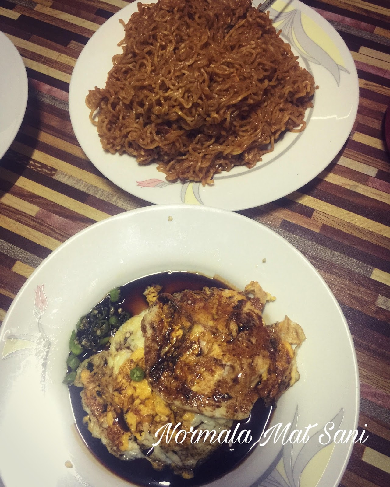 Maggie goreng ni request dari anak dara awak. sekali dengan mak bapa ikut makan sama. Kicap + telur mata + cili potong tak tau nak habak lagu mana. Sesekali makan macam ni memang sedap sesangat la.